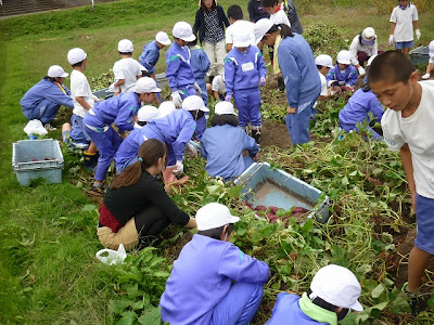 9月17日阿用小学校(田村優二校長)では、恒例の芋ほりが行われました。